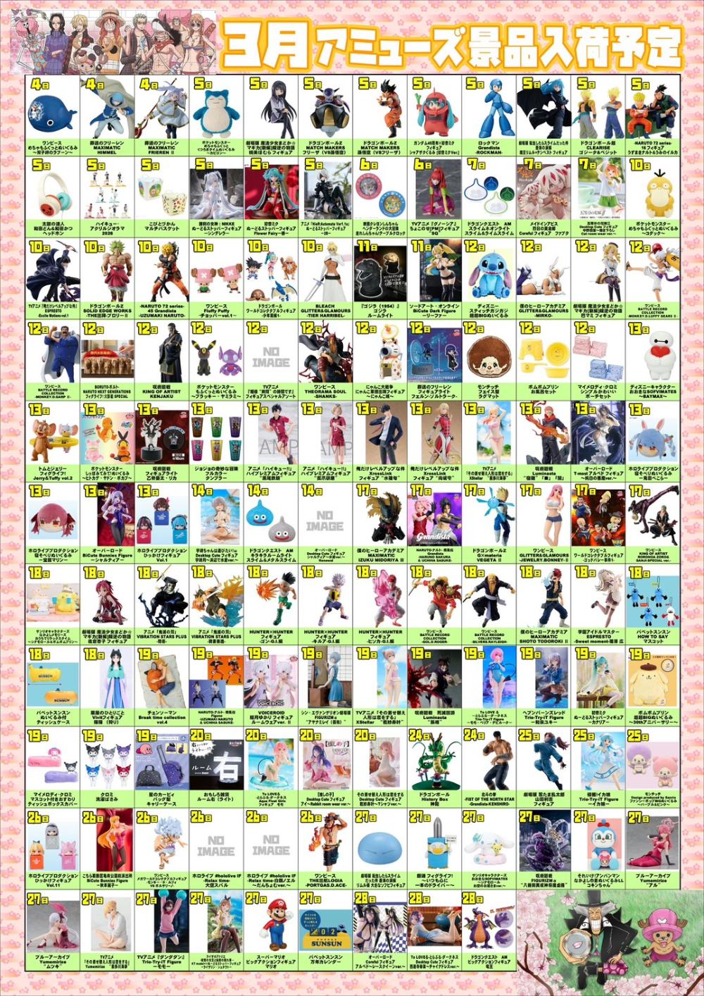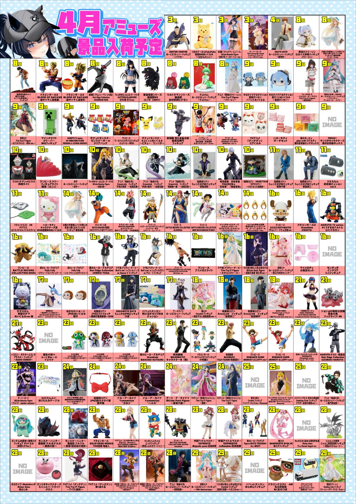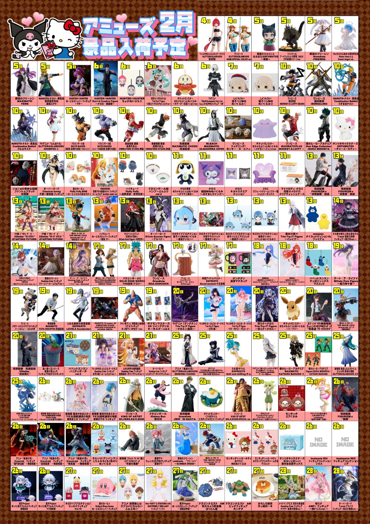 アミューズ景品入荷予定