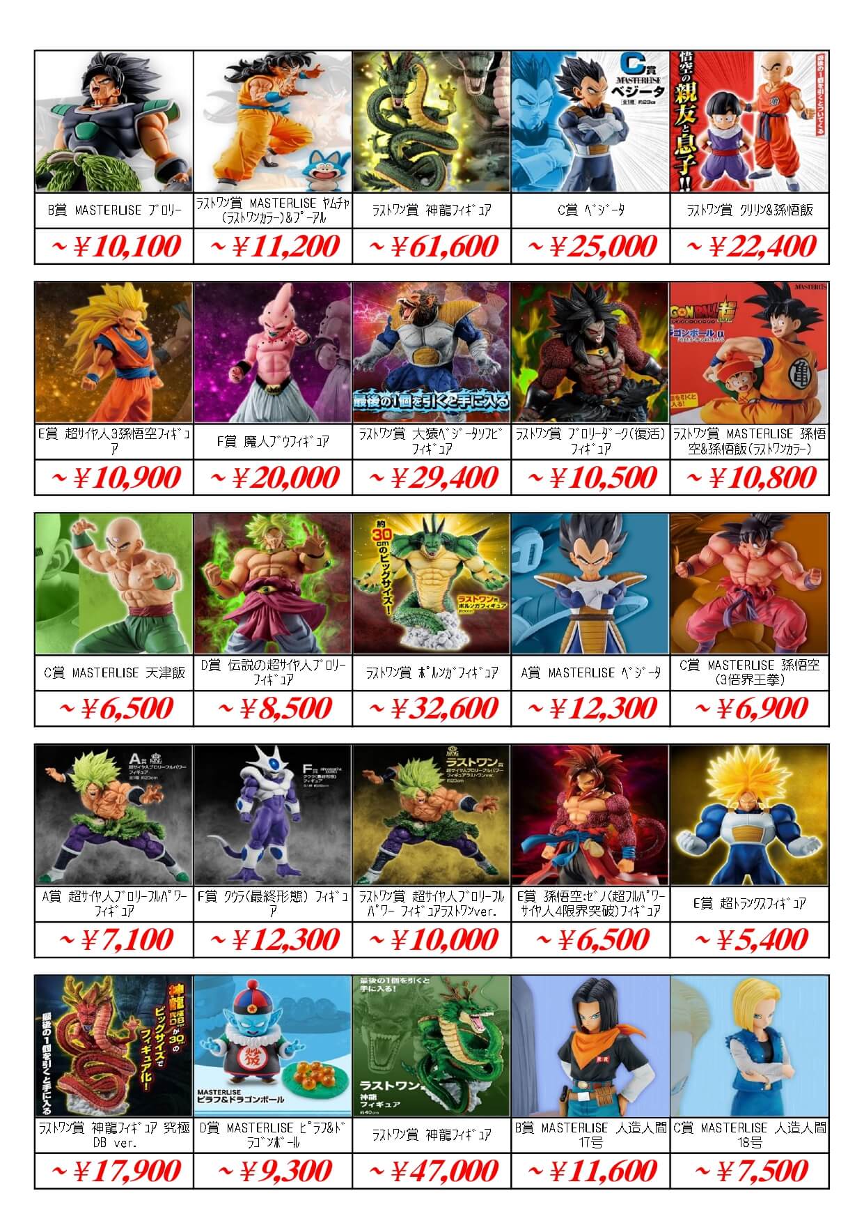 | 4535123820946 | ドラゴンボールZ 05 孫悟空&チチ | ¥41,300 |