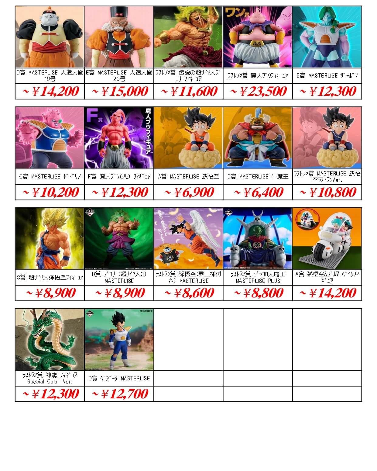 | 4535123819940 | ドラゴンボールZ 孫悟空 『F』 EDITION | ¥30,800 |