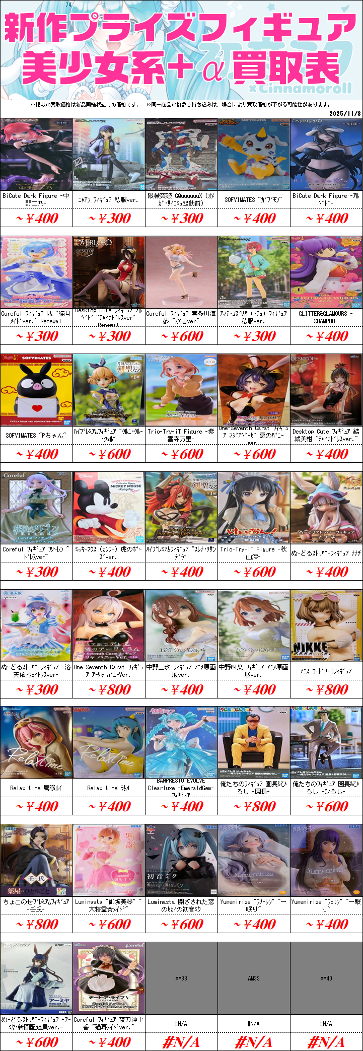 | 10月3日(金) | BiCute Dark Figure -中野二乃- | ¥400 |