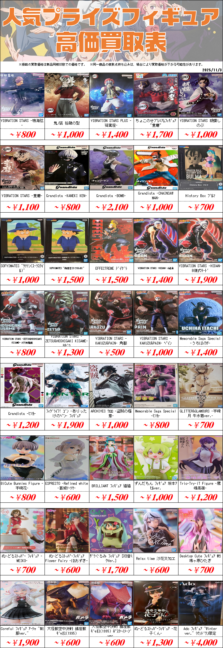 日本トップレベルの買取価格!プライズフィギュアを全国から高価買取しています!!
