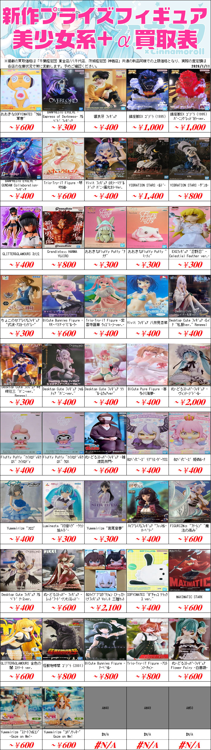 新作プライズフィギュア買取価格表