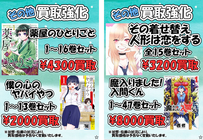 高価買取中の漫画