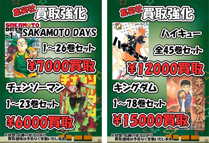 | ハイキュー!! | 全45巻セット | ¥12,000 |