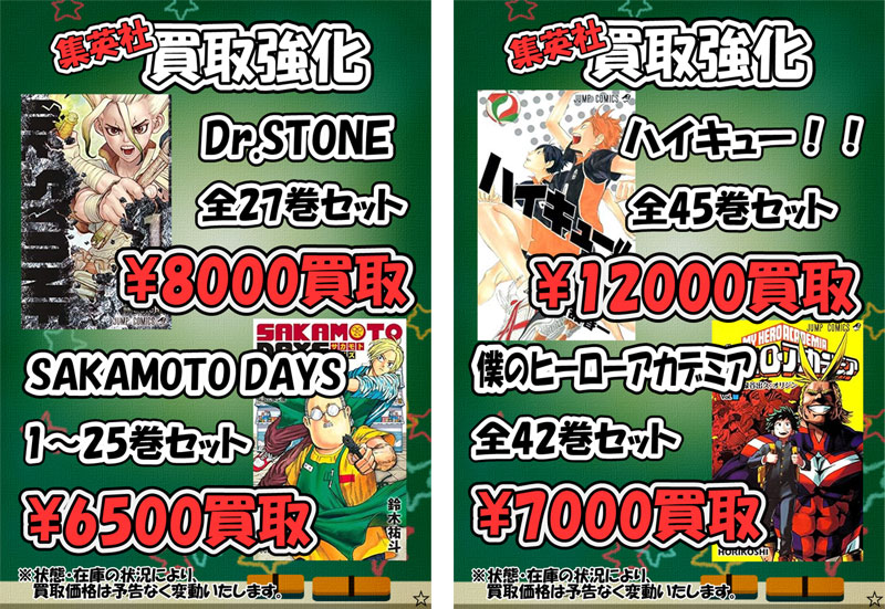 漫画・書籍・本のことはもちろん千葉鑑定団八千代店の買取情報など、お得な情報を随時配信しています!